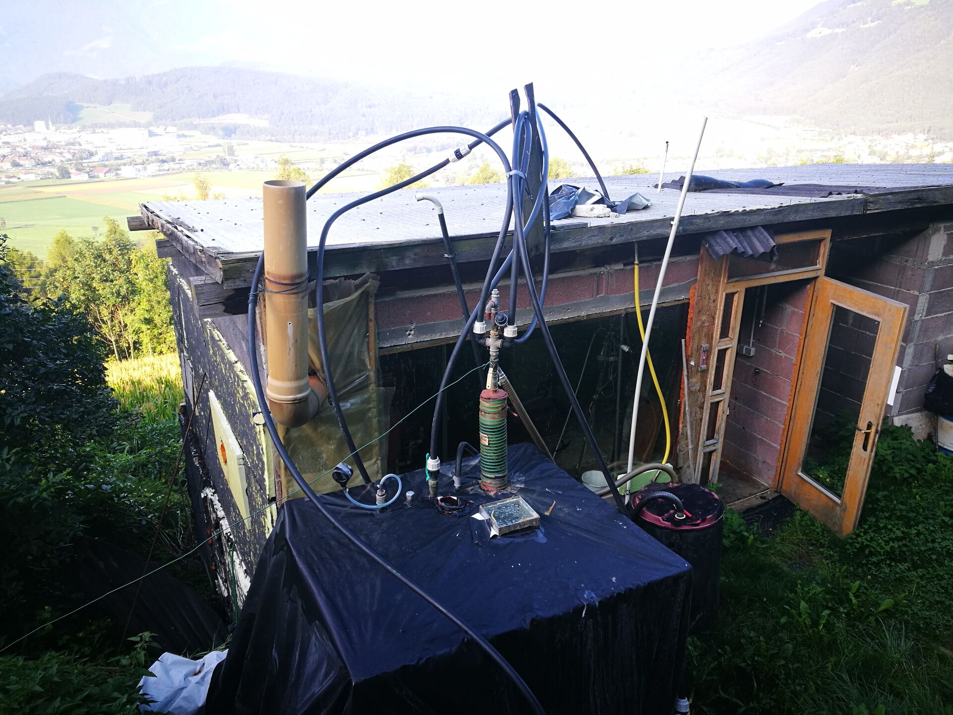Die Anlage wurde mit Gülle vom Stall befühlt und auf 35°C erhitzt. Nach einigen Monaten haben sich die Bakterien ausreichend vermehrt und begonnen Methangas zu bilden.