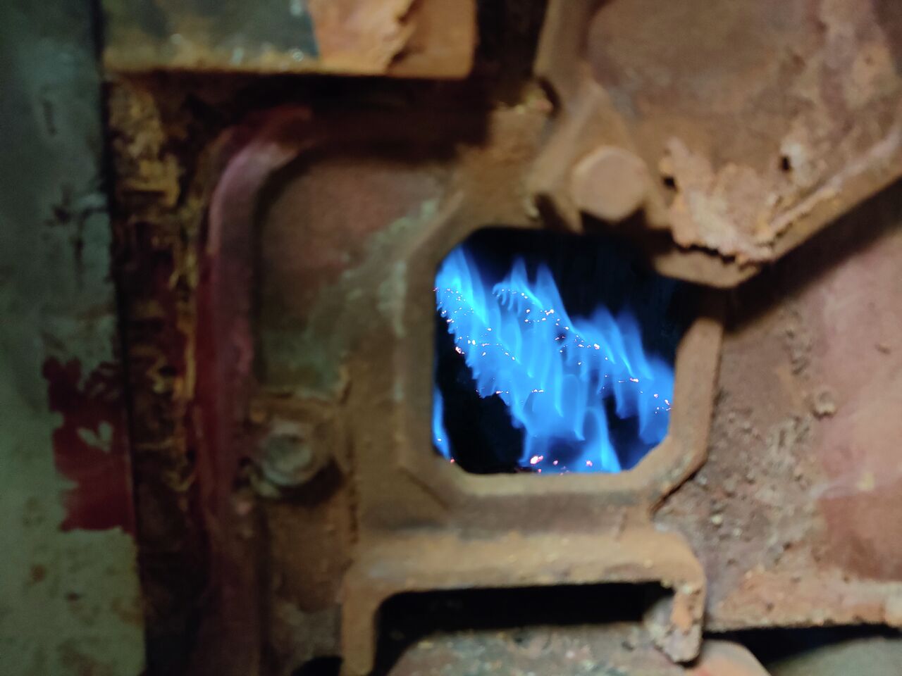 Das Gas wurde anschließend in ein Rohrsystem umgeleitet und im Gasofen verbrannt. Die gewonnene Wärme dient zur Erhaltung der 35°C im Fermenter und der Rest wird in das Wohnhaus geleitet.