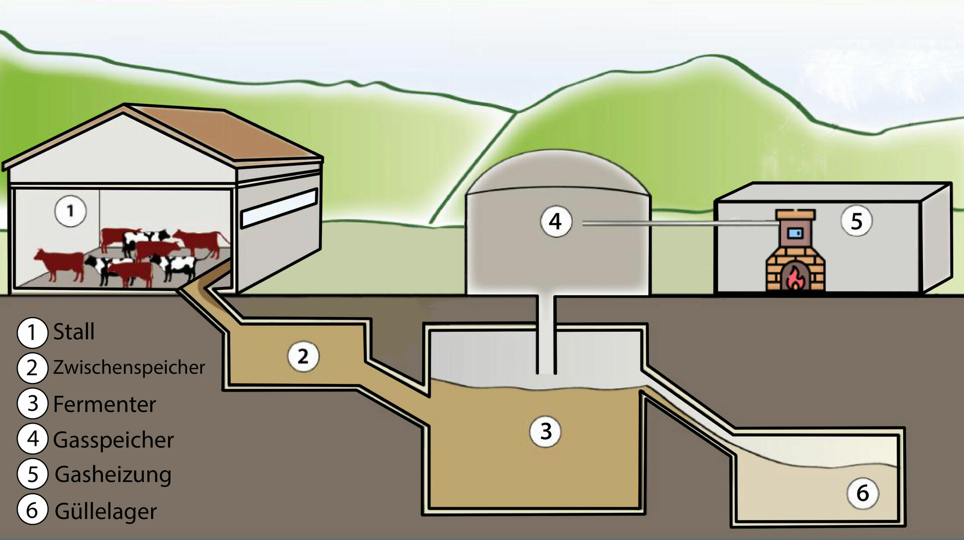 Nach drei Wochen hatte sich im geschlossenen Behälter Methangas gebildet. Anschließend baute er die Mistlege um und passte sie den Bedürfnissen an.